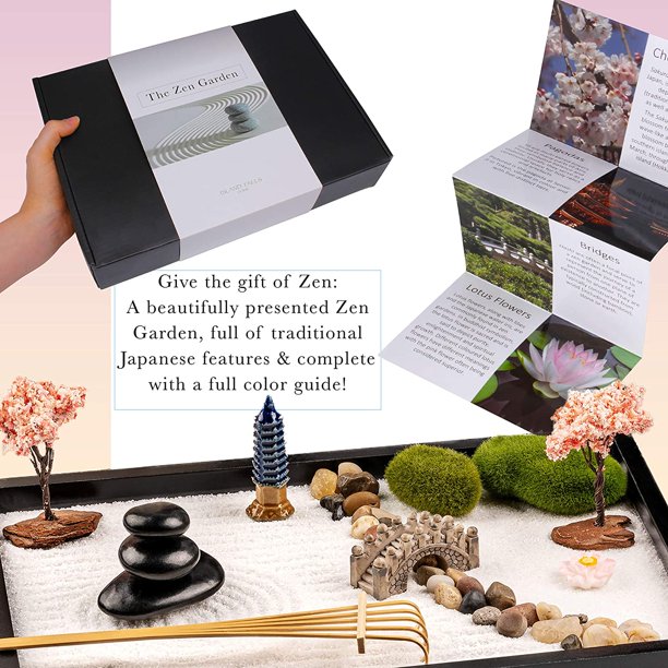 Extfit Zen Garden Kit 11x8 Inch Beautiful Premium Japanese Mini Rock Garden Gift Set Home Office Desk Accessories Zen Sand Garden 6 Tools 12 Features Desktop Meditation Decor Home Walmart Com